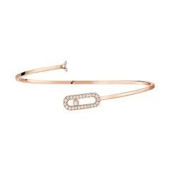 An embodiment of simplicity and feminine style, this 18ct rose gold cuff style bangleĀ features two bezelĀ set diamondsĀ totaling 0.10cts, giving a sparkling luxurious finish.