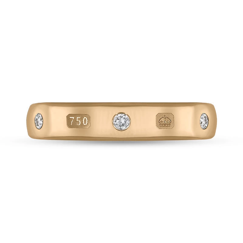 18ct Rose Gold Diamond Queen’s Jubilee Hallmark 4mm Ring, R1193_4_JFH