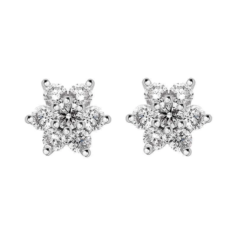 18ct White and Yellow Gold Diamond Cluster Stud Earrings, FEU-2488.Â