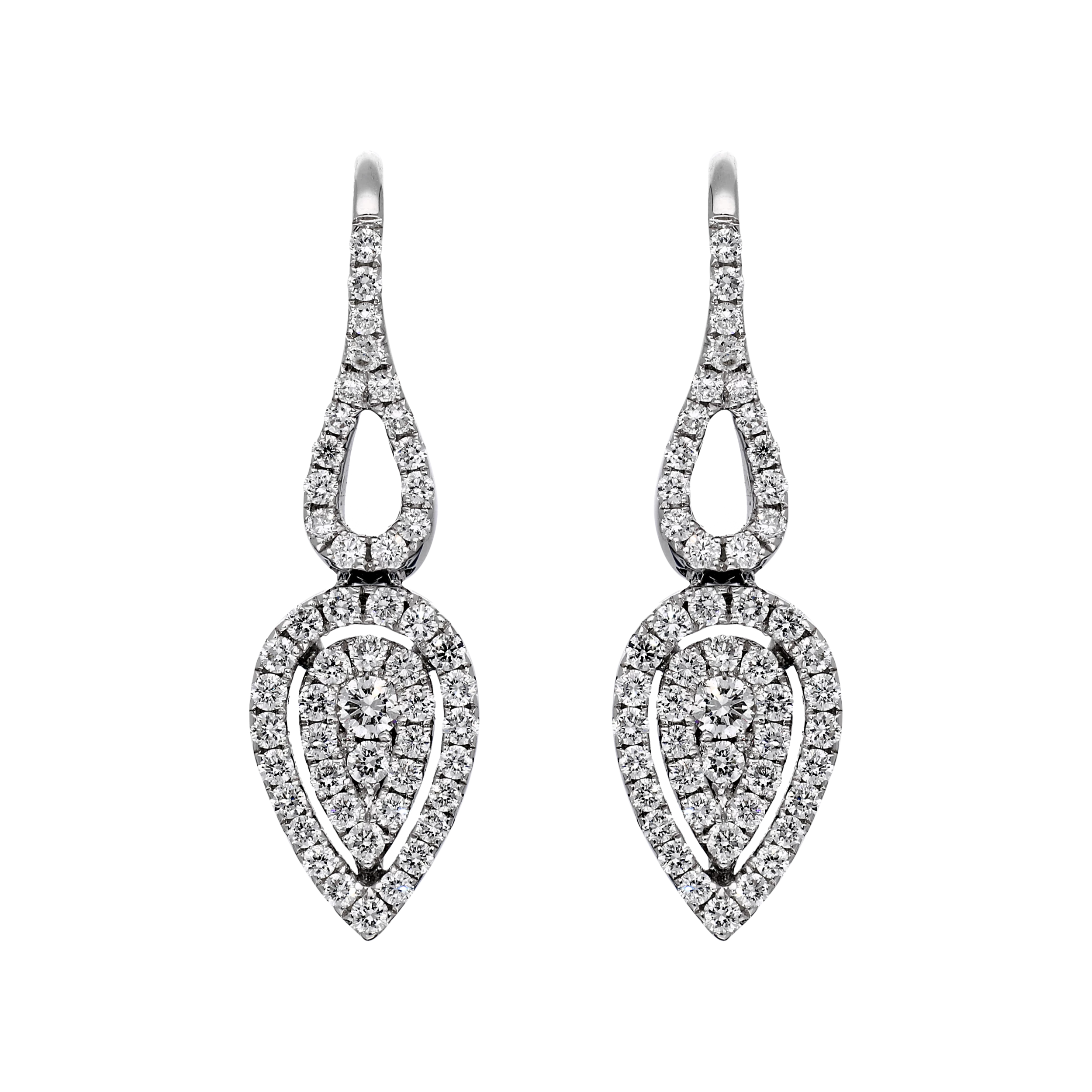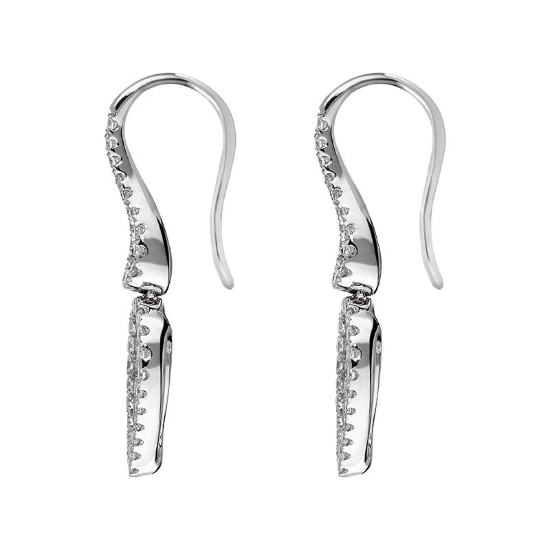 Elegant and feminine, these 18ct white gold drop earrings feature gorgeous pave set diamonds (0.69ct total) in a leaf inspired design. Designed for glamour, these diamond set earrings are completed by hooks for secure wear.Â