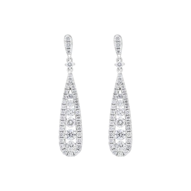 18ct White Gold 0.93ct Diamond Graduated Drop Earrings FEU-2781