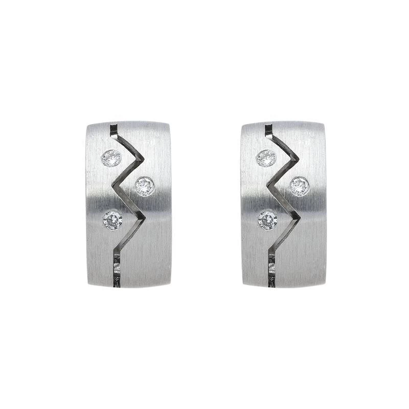 18ct White Gold Diamond ZigZag Satin Hoop Earrings, BRN-083.