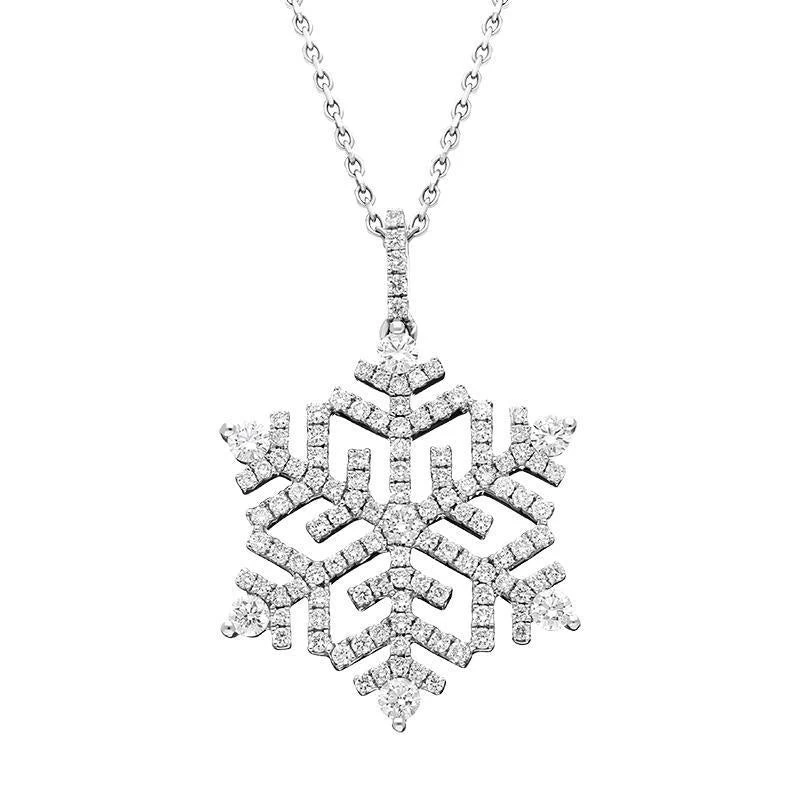 18ct White Gold Snowflake 1.13ct Diamond Necklace, PJW-095