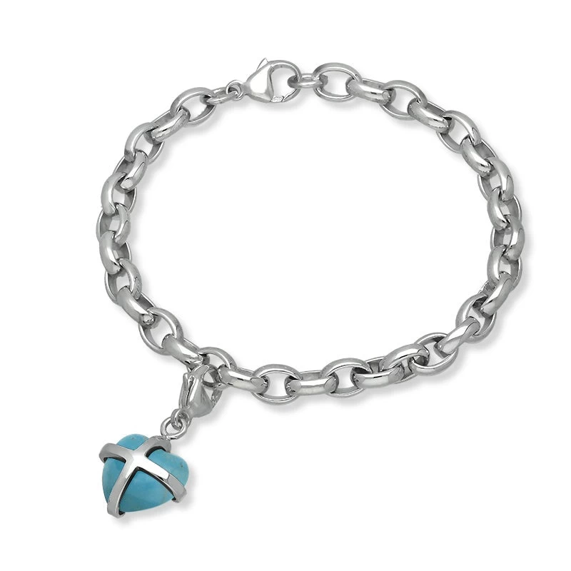 18ct White Gold Turquoise Small Cross Heart Charm Bracelet, B1209