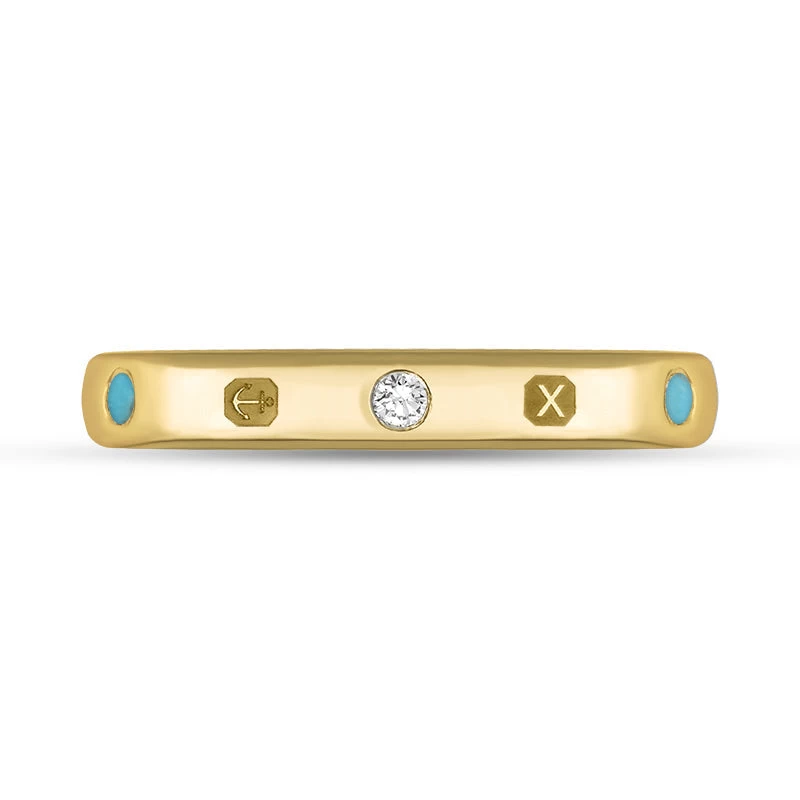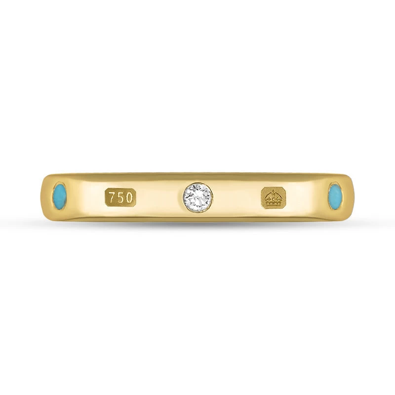 18ct Yellow Gold Turquoise Diamond Queen’s Jubilee Hallmark 6mm Ring, R1193_6_JFH