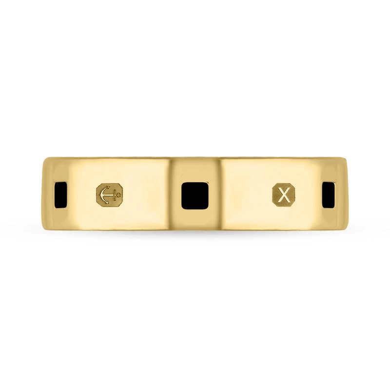 18ct Yellow Gold Whitby Jet Queen’s Jubilee Hallmark Princess Cut 5mm Ring, R1199_5_JFH