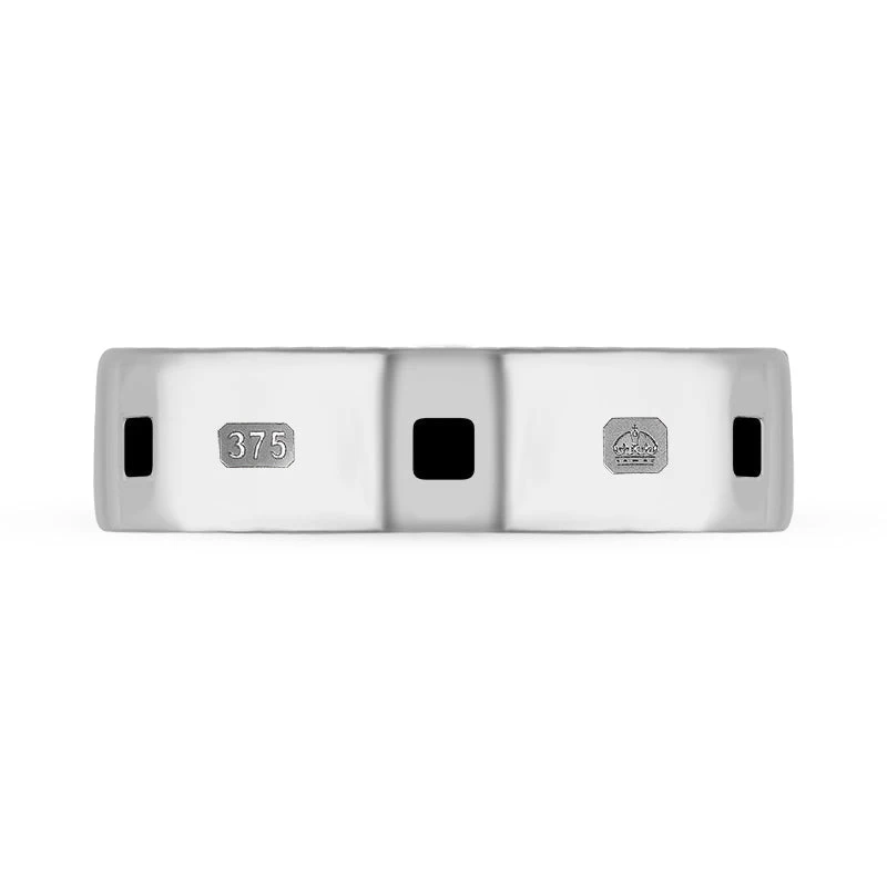 9ct White Gold Whitby Jet Queen’s Jubilee Hallmark Princess Cut 6mm Ring, R1199_6_JFH