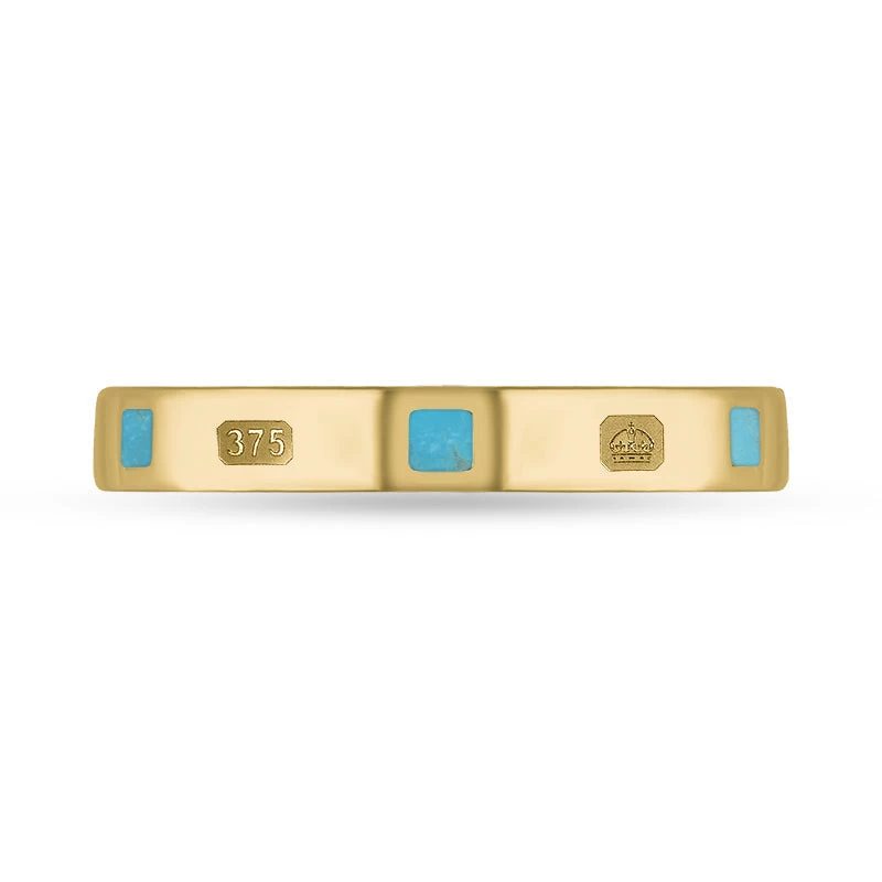 9ct Yellow Gold Turquoise Queen’s Jubilee Hallmark Princess Cut 3mm Ring, R1199_3_JFH