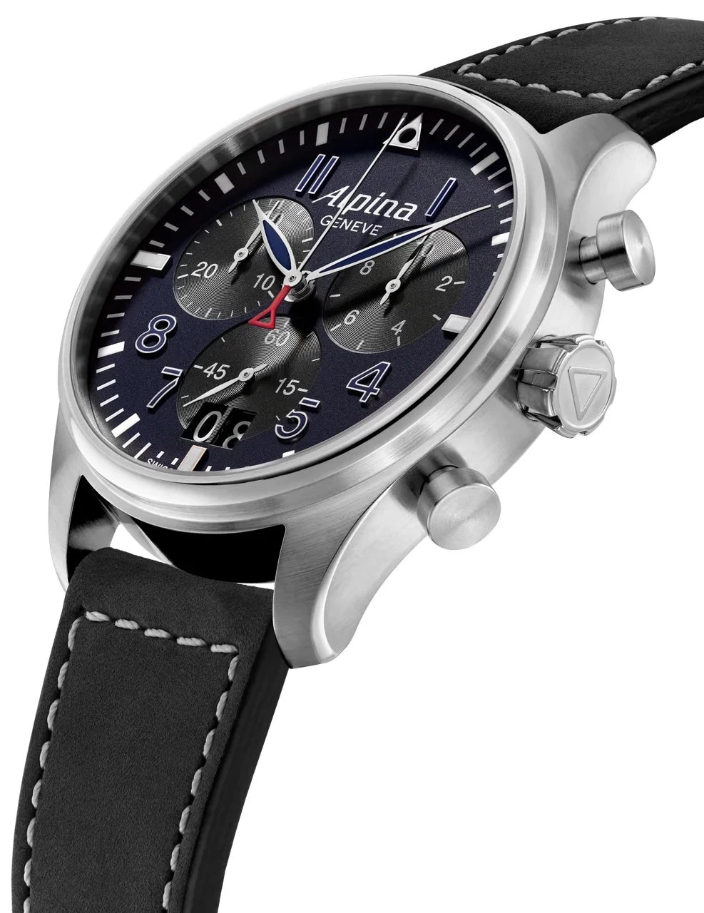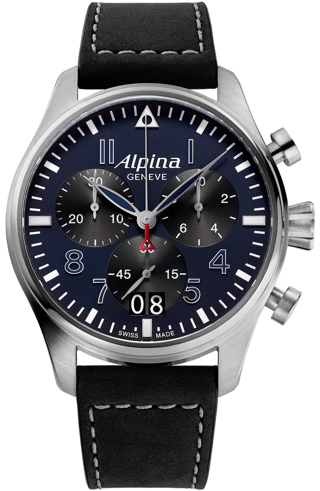 Alpina Watch Startimer Pilot Quartz Chronograph Big Date AL-372NB4S6. Since the 1920’s, Alpina has been developing pilot watches to accompany aviators and help them navigate in those early days. The Startimer collection stays faithful to the spirit of its predecessors, and presents clean and legible dials enhanced by traditional oversized crowns.