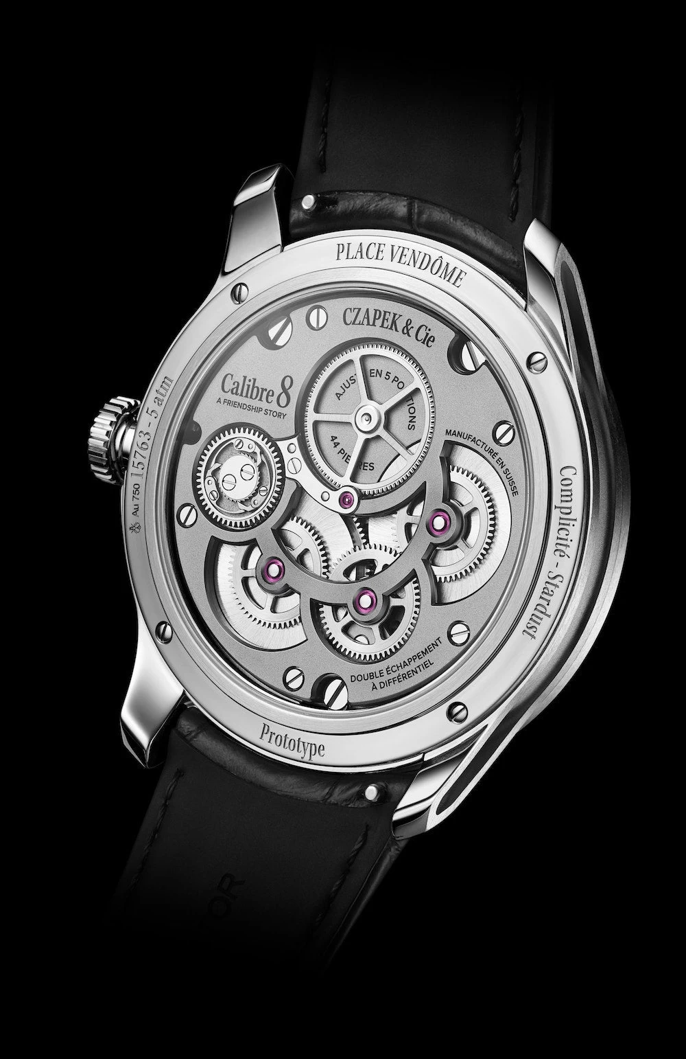 Czapek Watch Place Vendome Complicite Stardust Limited Edition Place Vendome Complicite Stardust. Czapek & Cie unveils Place Vendöme Complicite, a unique reinterpretation of a double escapement combination initially created in 1930 and very rare in wristwatches. Two independent oscillators beat at their own pace, with any rate variations balanced by a differential at 12 o’clock, all beautifully laid out on the dial side.