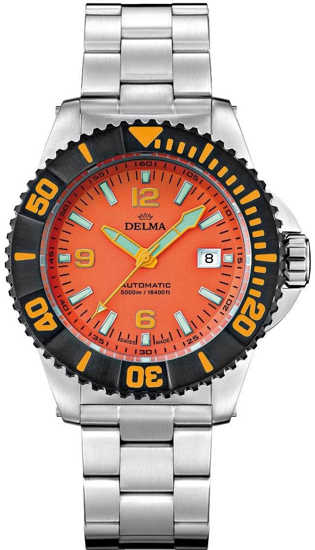 Delma Watch Blue Shark IV Orange Limited Edition 54701.760.6.154. The Blue Shark IV transcends its superb predecessors with an unimaginable water resistance to 5000 meters. This impeccable divers’ watch incites curiosity and exudes strength. As the fourth iteration of DELMA’s renowned deep-sea diver, it embraces the coveted Blue Shark design while integrating elevated durability and subtle enhancements.