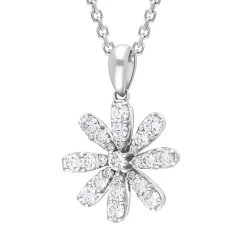 18ct White Gold 0.38ct Diamond Daisy Cluster Pendant Necklace