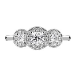 18ct White Gold 0.45ct Diamond Trilogy Halo Ring