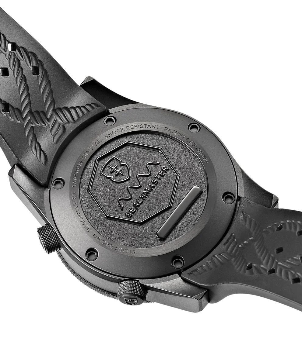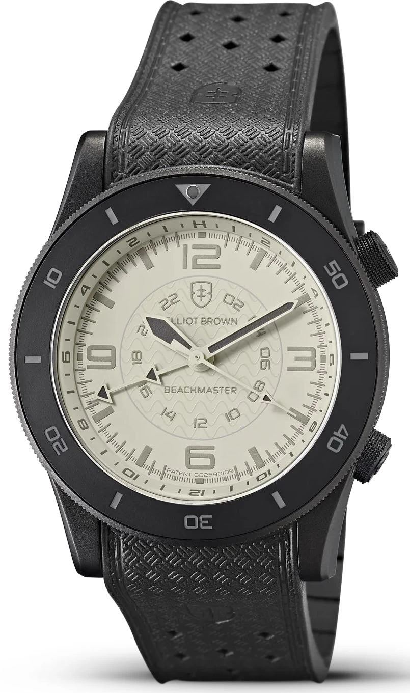 Elliot Brown Watch Beachmaster Ghost Rubber 0H0-622-R51G. Beachmaster is an apex mission timing watch. 4 years in the making and so original its design and functionality was granted a patent. Initially imagined in response to a request at a Royal Marines event then refined into the most capable watch Elliot Brown have ever put their name to. As a nod to its inception via the Royal Marines, Elliot Brown christened it Beachmaster, the Beachmaster is the military officer in charge of the disembarkation phase during an amphibious assault.