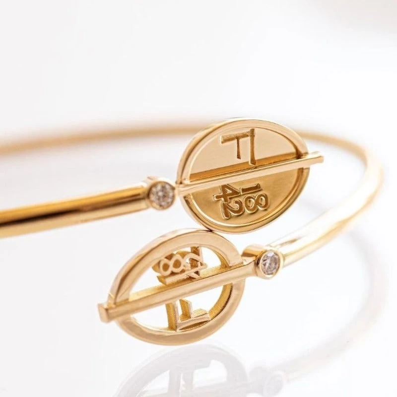 Faberge 1842 18ct Yellow Gold Diamond Egg Crossover Bracelet 1428BT2599