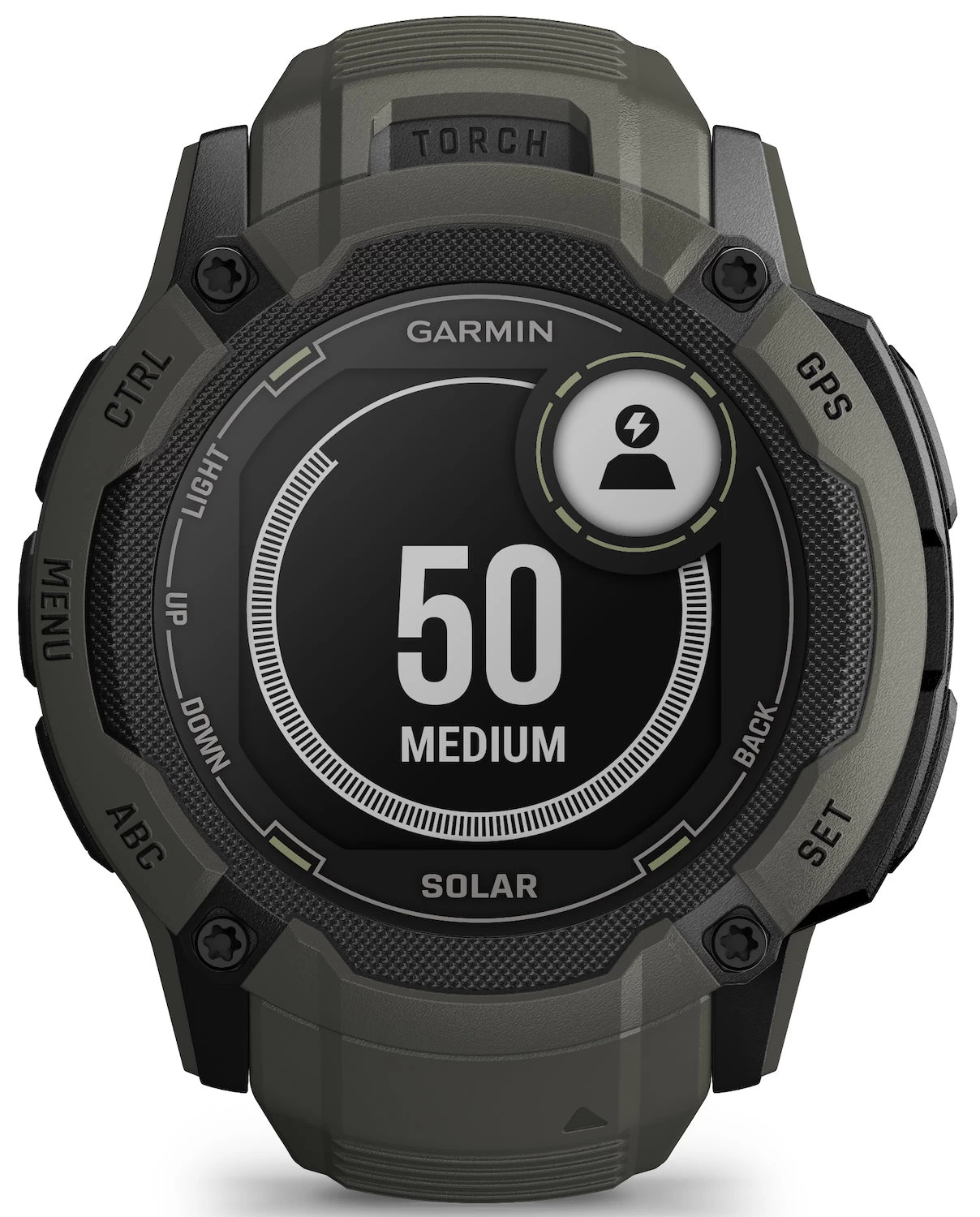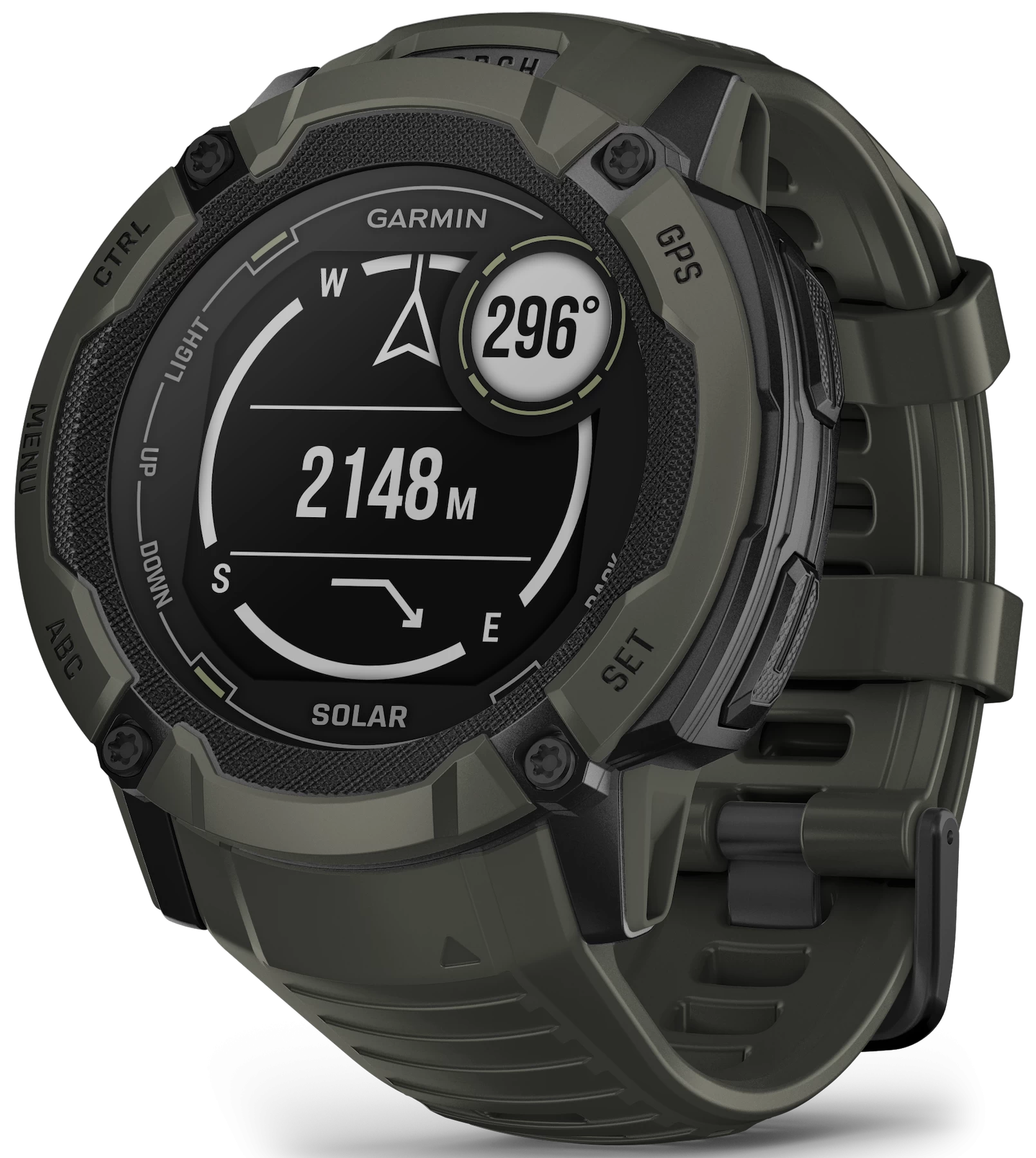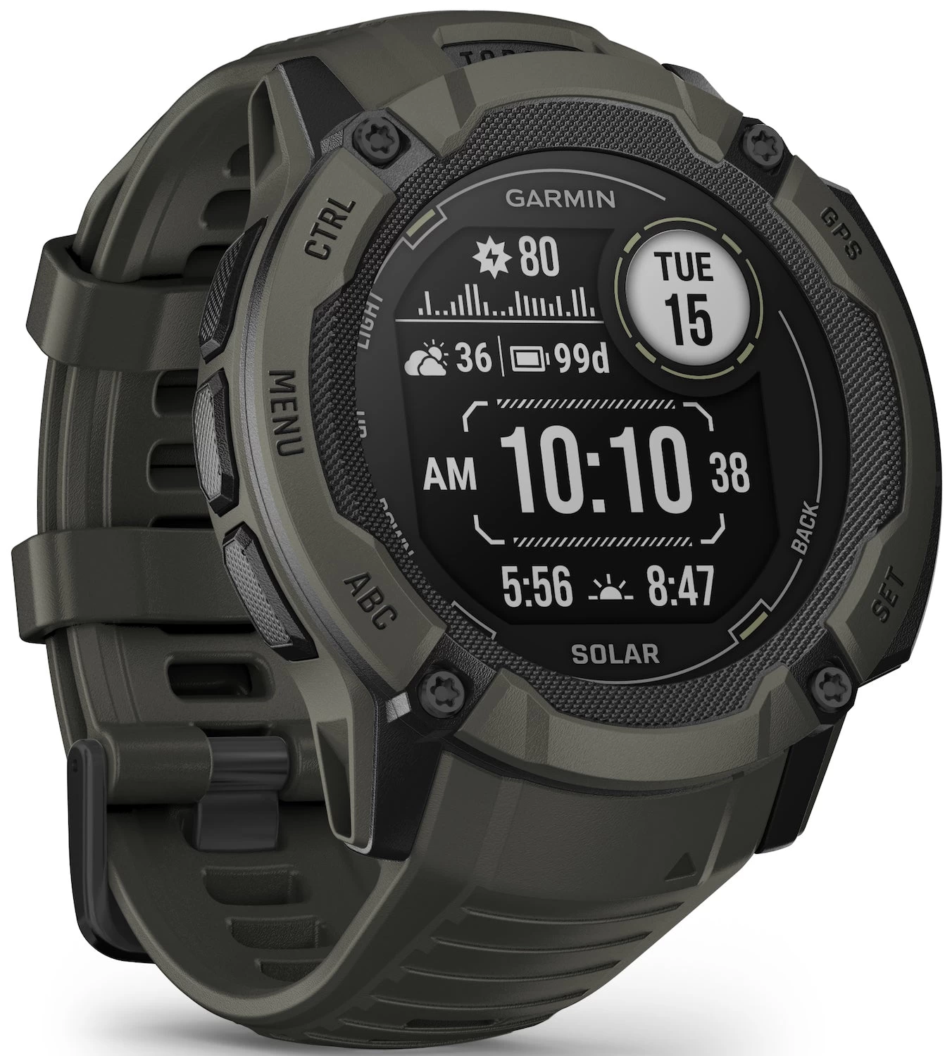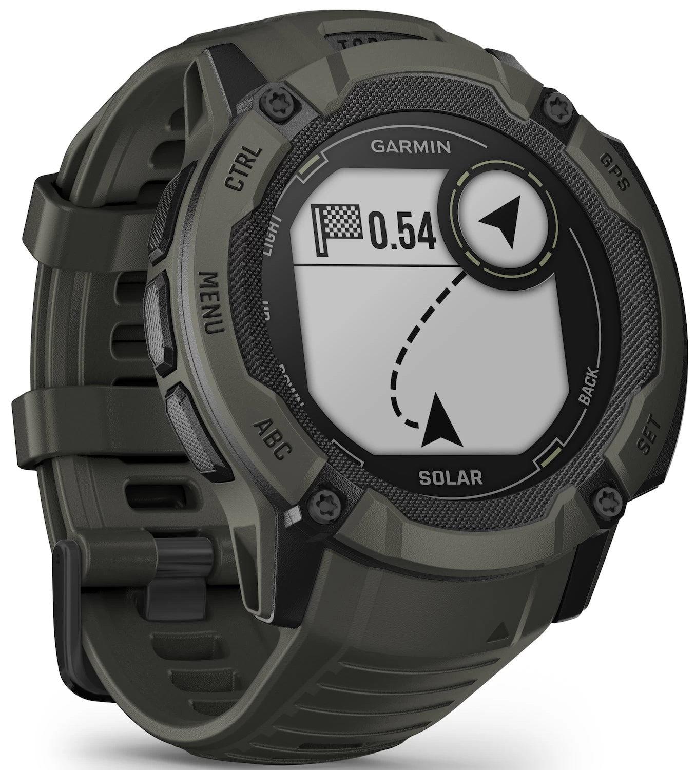 Garmin Watch Instinct 2X Solar Moss 010-02805-05. Whatever you do, own it with Instinct 2X Solar. This bold, rugged GPS smartwatch is tough enough to keep up with you and unique enough to fit your style. Take on life’s unlimited possibilities with preloaded activity profiles, health metrics, an LED flashlight and extended battery life, thanks to the Power Glass solar charging lens.