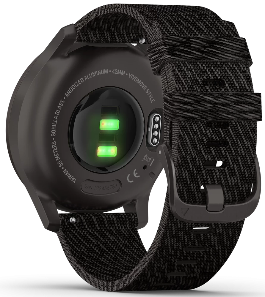 Garmin Watch Vivomove Style Graphite Aluminium Case Black Pepper Nylon 010-02240-03.