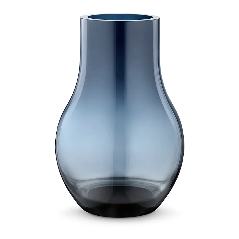 The modern vase is handmade in heavy glass in a special blue created for Georg Jensen. Height: 300mm.