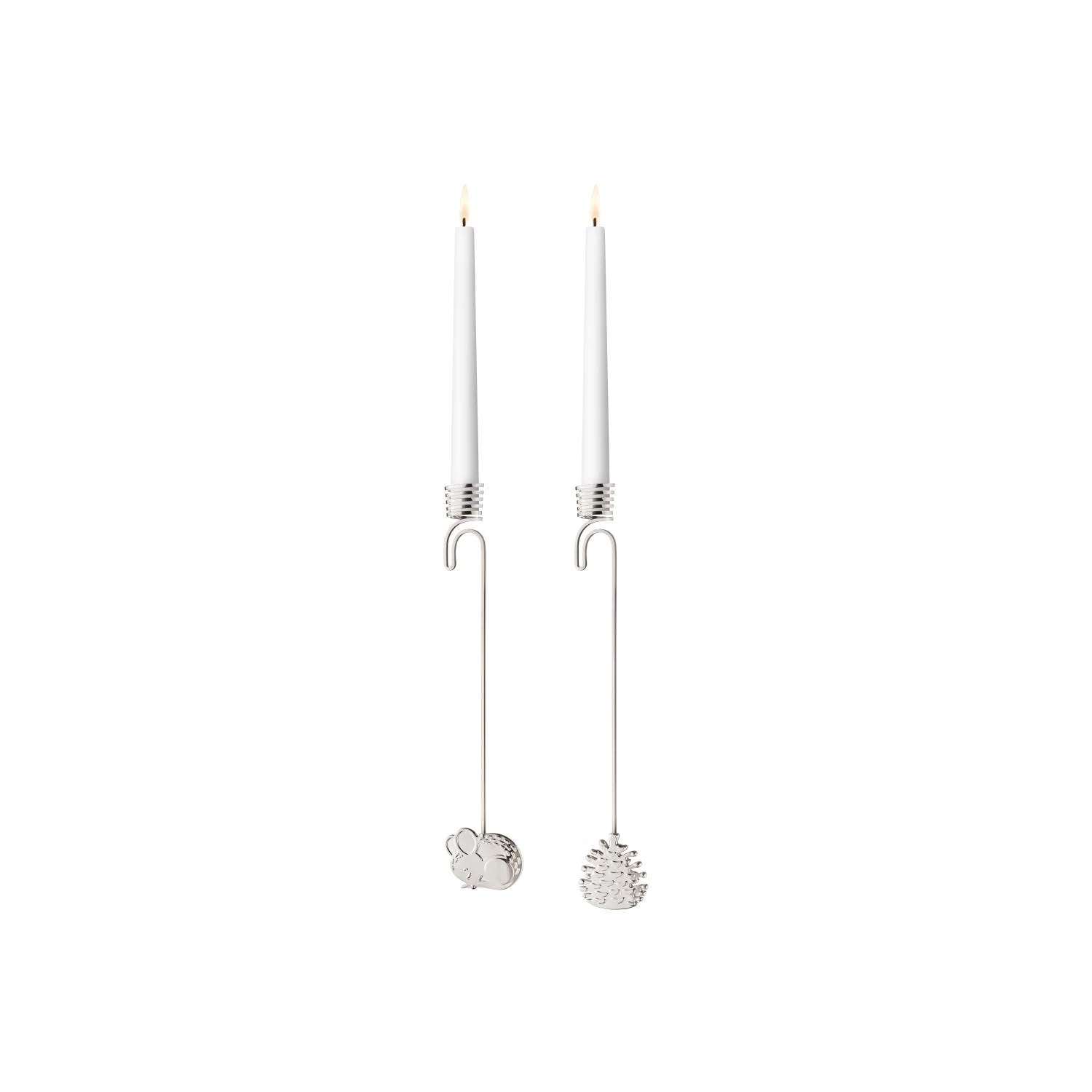 This set of two candleholders for the Christmas tree features elements from the winter forest, which inspired Sanne Lund Traberg when designing the 2023 Christmas Collectibles. Plated in palladium, this set in zinc alloy features a curled-up mouse and a pine cone and is designed to match the collection’s other ornaments which include elements from the winter forest.