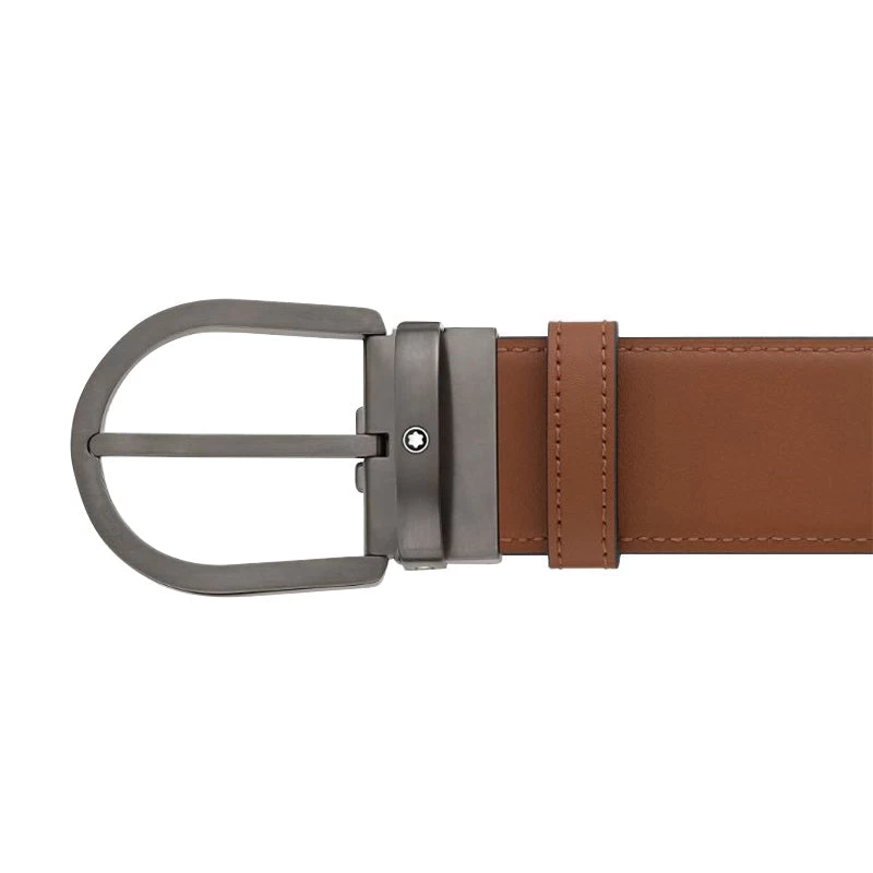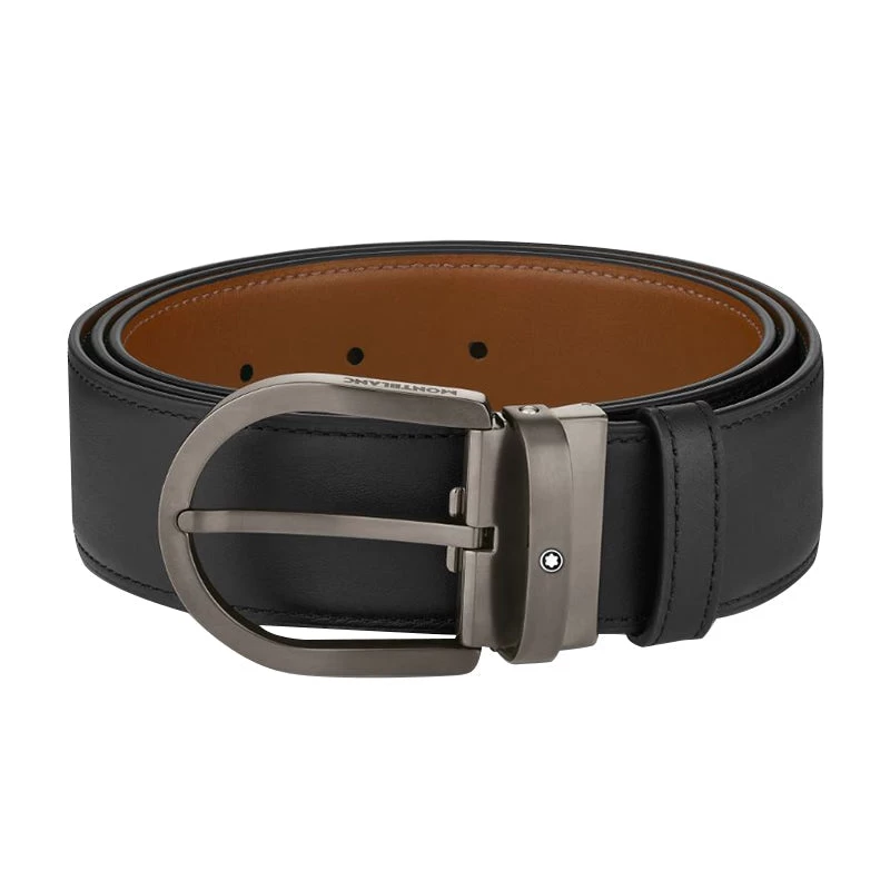 Montblanc Horseshoe Buckle 40mm Leather Reversible Belt Black Brown 129432.