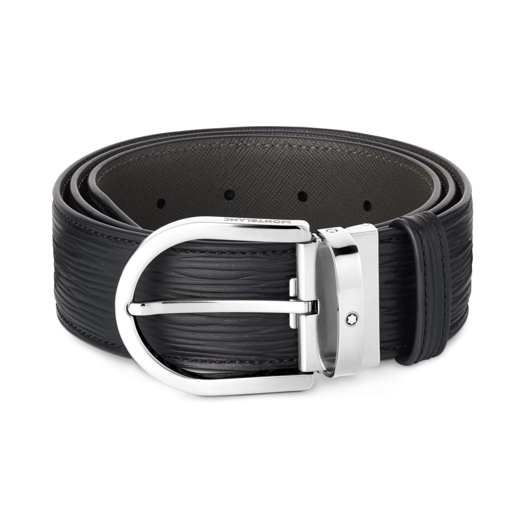 Montblanc Horseshoe Buckle Printed Black 40 mm Leather Belt 131172