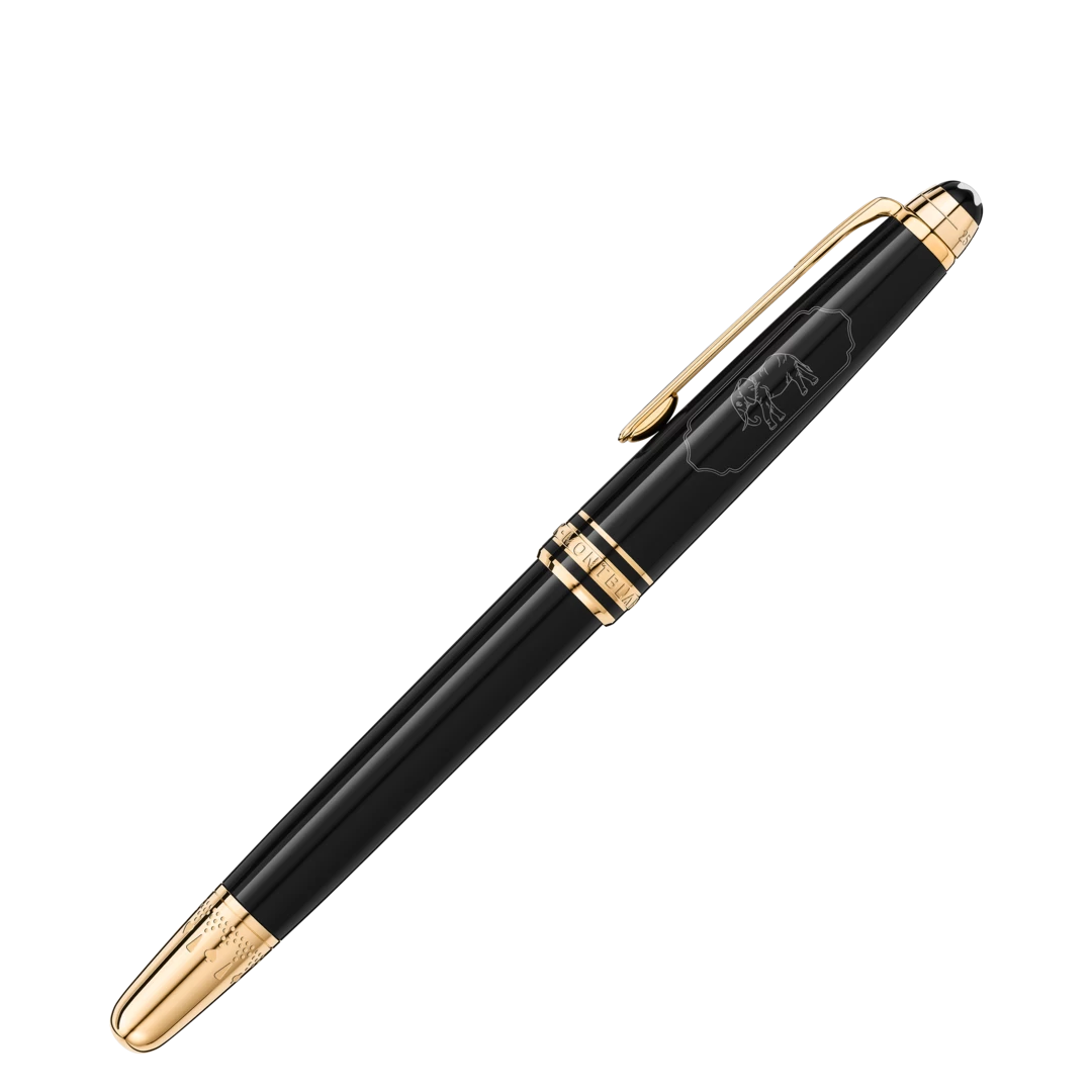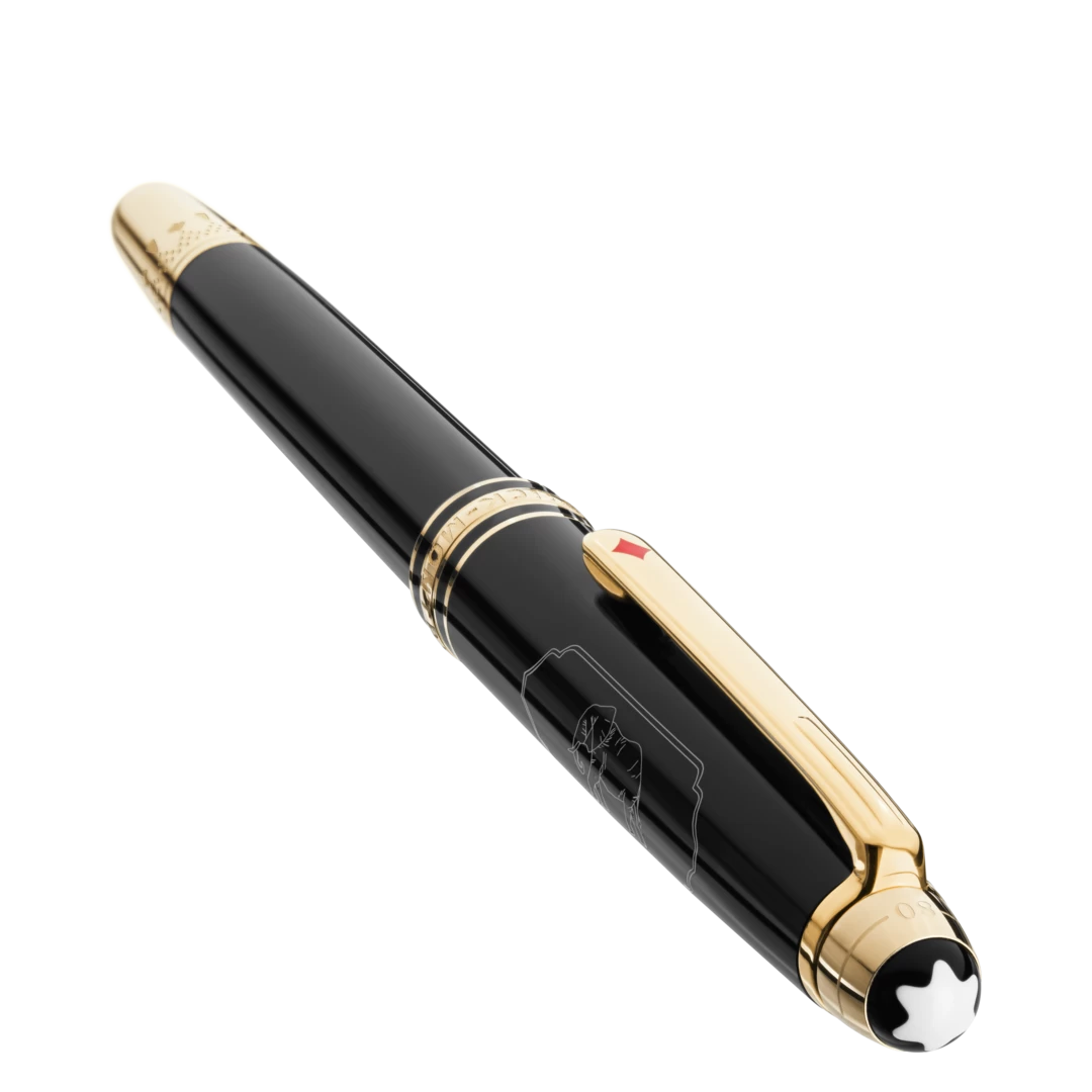 The Meisterstuck Around the World in 80 Days collection is inspired by the famous adventure novel by Jules Verne. The Classique Rollerball in anthracite precious resin draws on the second leg of the journey from Bombay to Yokohama. The main characters travel in this part of the adventure on a majestic elephant, which is featured in a cartouche on the cap. The clip features a red lacquered diamond card suit and the cone is engraved with a pattern and card suits representing Mr. Foggs wager to make the journey in 80 days. The cap top is embossed with the length of the journey, 25 days from Bombay to Yokohama and 80 days in total.