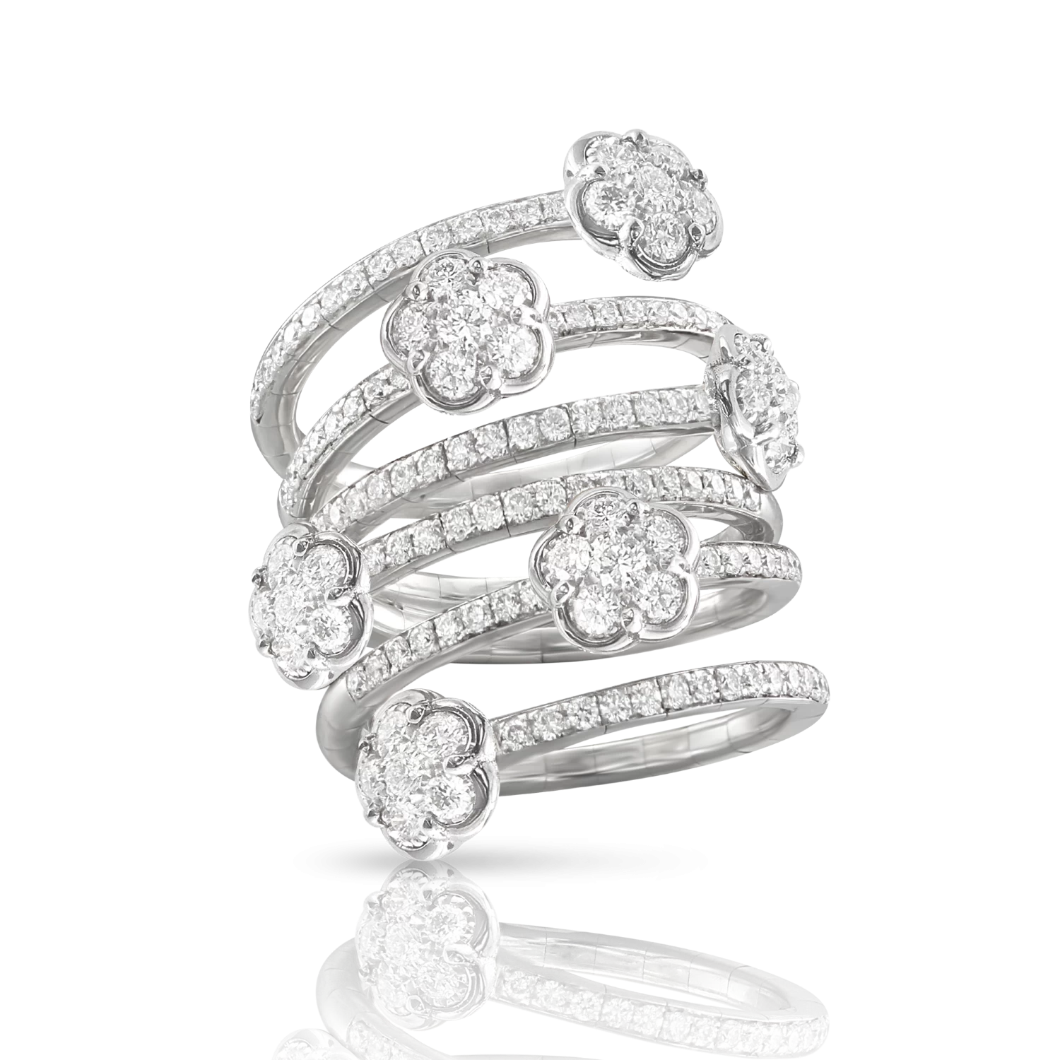 Pasquale Bruni Figlia Dei Fiori 18ct White Gold Diamond Six Flower Twist Ring 16050B