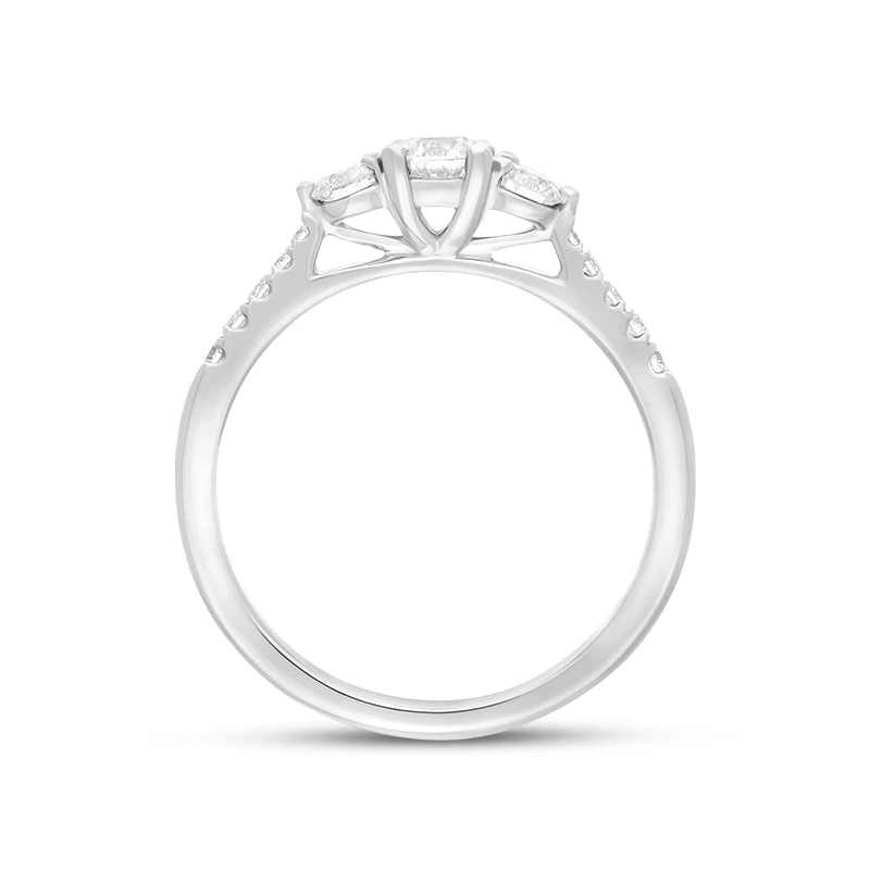 An embodiment of elegance and luxury, this feminine ring boasts three brilliant cut diamonds with diamond set shoulders (0.26ct, 0.24ct, 0.10ct. Diamonds 0.30ct total), which sparkle with every movement of the hand.