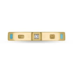 18ct Yellow Gold Turquoise 0.05ct Diamond Queen’s Jubilee Hallmark Princess Cut 3mm Ring