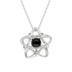Sterling Silver Whitby Jet Open Star Flower Two Piece Set