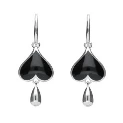 Sterling Silver Whitby Jet Inverted Heart Two Piece Set