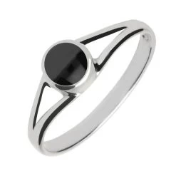 Sterling Silver Whitby Jet Queen’s Jubilee Hallmark Princess Cut 6mm Ring D