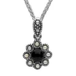 Sterling Silver Whitby Jet Pearl Round Bead Edge Two Piece Set