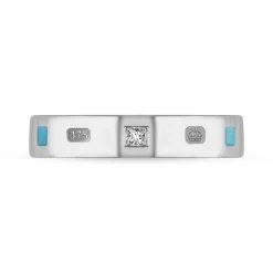 9ct White Gold Turquoise 0.09ct Diamond Queen’s Jubilee Hallmark Princess Cut 4mm Ring