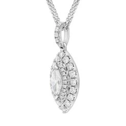 18ct White Gold Diamond Marquise Cut Two Row Cluster Pendant Necklace