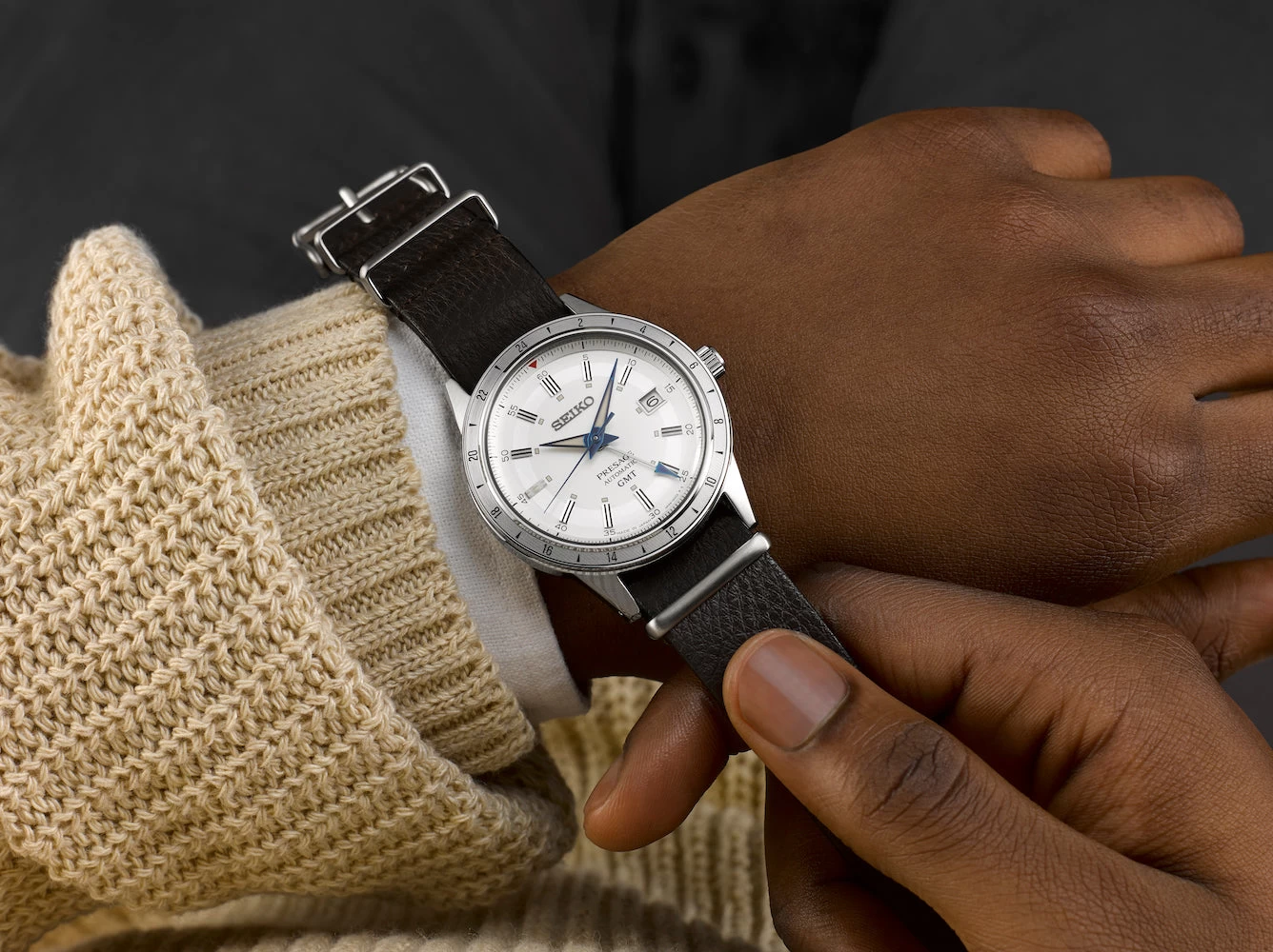 An addition to the Presage Style 60s series, it retains the signature features of 1960s retro vintage looks and crown chronograph-inspired features with a GMT function to allow the wearer to track the time in two time zones at once.