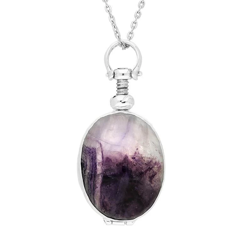 Sterling Silver Blue John Glass Oval Locket Necklace, P3294