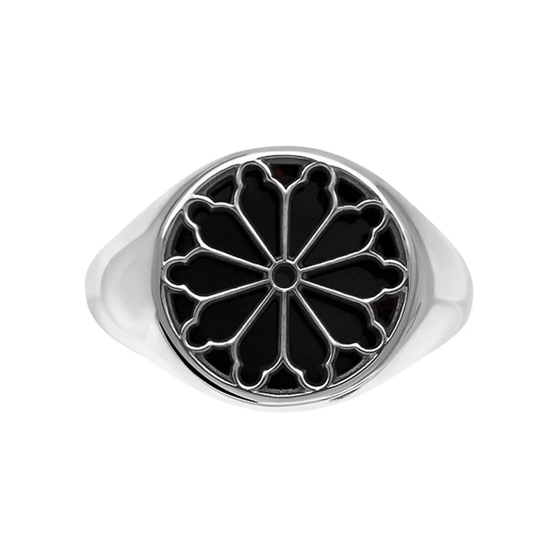 Sterling Silver Whitby Jet Whitby Abbey Window Large Round Ring R1257